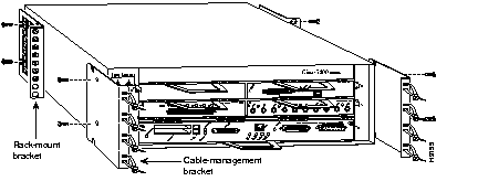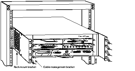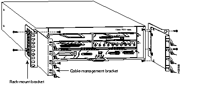 This section explains how to install the rack-mount and cable-management brackets at the front and the rear of a Cisco 7200 series router. Before installing the chassis in the rack, you must install a rack-mount bracket on each side of the front or rear of the chassis. If you are rack-mounting the chassis from the front and you plan to use the cable-management brackets, you must install the cable-management brackets when you install the rack-mount brackets on the chassis.