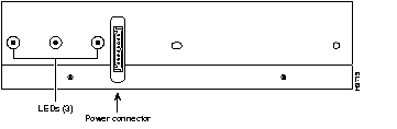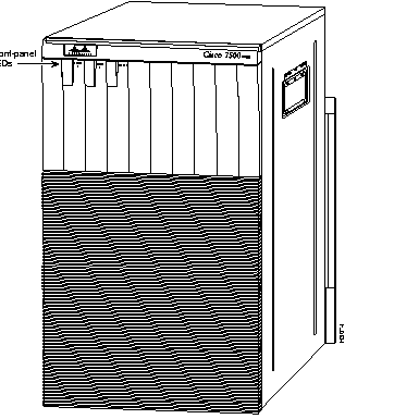 The Cisco 7507 front panel, shown in Figure 1-4, contains three status indicators and two removable panels for access to the internal components. The three light emitting diodes (LEDs) on the front panel indicate normal system operation and the currently active power supplies. On the back of the router, a normal LED on the RSP2 (or RSP4) and LEDs on the power supplies indicate the same status.