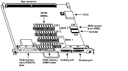 | RSP1 | Up to 128 MB available through SIMM upgrades. DRAM is contained in up to four SIMM sockets: U4 and U12 (also called bank 0) and U18 and U25 (also called bank 1) |