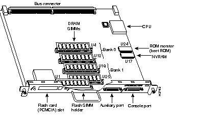 | Flash Memory | 8-MB SIMM | 1 | Contains the Cisco IOS images on the RSP4 | U1 |