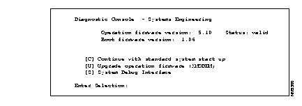 [C] Continue with standard system startup--Select this option after you have resolved the firmware problems with options [U] or [S]. It brings up the debugged or upgraded firmware.