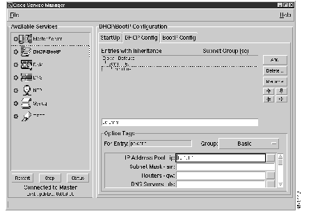 | Custom option tags | BootP and DHCP support a set of generic tags that let administrators provide custom configuration data for which clients must be configured to interpret. In traditional BootP and DHCP configuration files, custom option tags are in the form Tn=value, where n is an integer. In the Cisco DHCP/BootP server, you can define custom tags with the CSM (see the section, "Adding Custom Parameters"). |