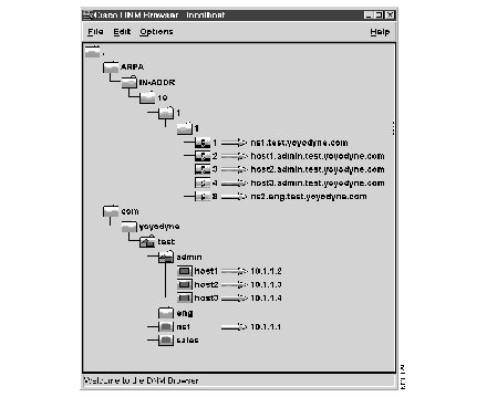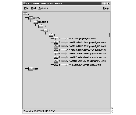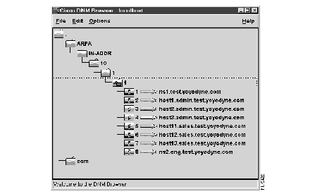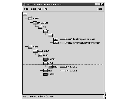 Step 4 Verify that the zone data has been loaded by starting the DNM Browser. Double-click the .com domain and you should see that yoyodyne.com has been loaded. You can browse the rest of the domains to verify that all of the zone files have been loaded.