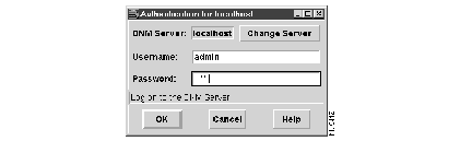 Step 2 In the Authentication for localhost dialog box, enter admin in both the Username and in the Password fields, and click