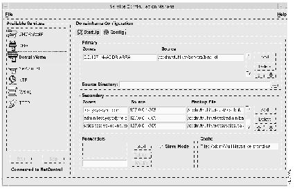 Step 2 Choose the DNS server configuration editor by clicking on the DomainName icon in the Available Services list. Notice that the DNS server is already configured to resolve the reverse domain for "localhost" and "0.0.127.in-addr.arpa" in the Primary area.