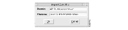 (b) In the Import Zone File dialog, enter admin.test.yoyodyne.com in the Domain field, and install_dir/MultiNet/test/db.admin in the Domain Name field, and click on OK.