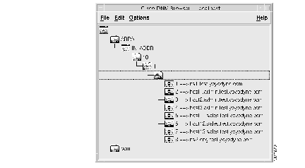 Step 2 If yoyodyne.com already appears in the DNM Browser window (remaining from the exercises in previous chapters), delete the DNM server's database by selecting the top-level domain ("."), and choosing Delete from the Edit menu.