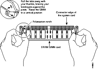 Step 4 Remove the existing DRAM SIMM by pulling outward on the connectors to unlatch them, as shown in Figure A-5. Be careful not to break the holders on the SIMM connector.