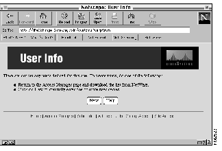 The User Info window appears. The Sample User appears in the Select a user pull-down menu.