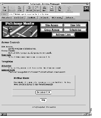 The address list no longer appears in the pull-down menu. Remember that if you delete an address list that the site or one or more groups use, the access controls default to permitting all locations.