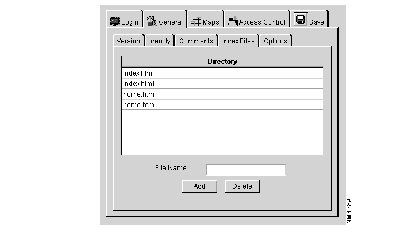 When a user browses a particular URL, the browser searches for particular files in that path to automatically load. These files are called index files. Typical index files are: home.html, home.htm, index.html, and index.htm. If you want to specify any other index files than those listed, enter them in the Directory table of the Index Files tab: