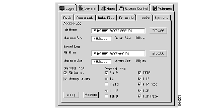 The Logging Options allow you to keep track of and record file access in access log files and events in event log files. This is helpful for tracking problems on the network and identifying potential security violations.