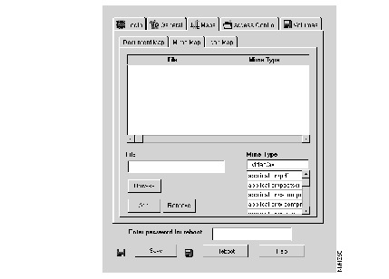 When the Micro Webserver transmits a document to the browser, it sends a mime type that the browser how to process the document. You can configure the mime type that is transmitted based on the file path using the Mime Map tab.
