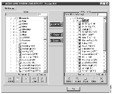 The Micro Webserver has its own file transfer and management utility called the File Transfer Utility.This program runs under Windows 95 and Windows NT 4.x only. If you are running any other operating system, you must use a native FTP client (such as Fetch on the Macintosh). You can access the File Transfer Utility from the Cisco home page or the Cisco Micro Webserver program group on the Start menu. Topics in this section include: