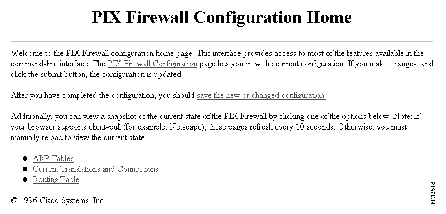 PIX Firewall provides a graphical user interface to help simplify configuration tasks. Once you have specified the network interface speed and IP addresses (as described in the previous section), you need to enter two additional commands and you can then use a network browser, such as Netscape Navigator, to complete the configuration. You can have up to 16 simultaneous HTTP console sessions.