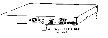 To manage the switch through the management console, you must use the RJ-45-to-RJ-45 rollover cable and the appropriate adapter (both supplied with the switch) to connect the RJ-45 console port of the switch to a terminal or modem.