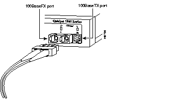 Step 2 Insert the other end of the cable into the 100BaseFX connector of the target device. The port status LED comes on when both the Catalyst 2820 or 1900 and the connected device are turned on. If the port LED does not come on, the device at the other end might not be turned on, the transmit and receive cables could be reversed, or there is a problem with the adapter installed in the attached device. See the "Troubleshooting" chapter for more information.