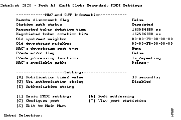 [1] Basic FDDI settings. Display the menu described in the "Basic FDDI Settings" section in this chapter.