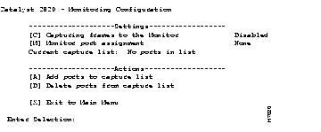 [G] Generate alert on address violation. Whether or not the Catalyst 2820 or 1900 changes the port status when an address violation occurs, it can also send an SNMP alert to a management station. Traps are sent to the IP addresses defined for the trap manager with the SNMP Management Menu. Select this option to enable or disable this feature. Enter E or D at the prompt and press Return.