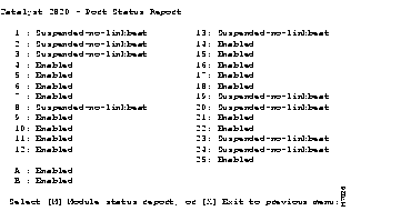 This report displays the status of the installed modules. Definitions of these terms can be found in the "Port Configuration" section in this chapter.