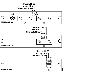 All network connectors and LEDs are on the FDDI module front panels. These panels are shown in Figure 1-1 and described in the following sections.