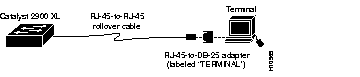 | Console Port (DTE) | RJ-45-to-RJ-45 Rollover Cable | RJ-45-to-DB-25 Terminal Adapter | Console Device | |