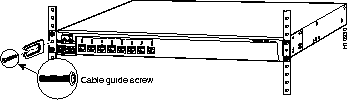 Attaching cable guides is recommended to prevent the cables from obscuring the front panel of the switch and the components of other devices installed in the rack. If the switch is attached to a 19-inch or 24-inch rack, you can attach the optional cable guide to the left or right bracket using the supplied black screw, as shown in Figure 3-5. The Catalyst 2916M XL cable guide takes two screws.