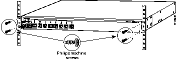 After the brackets are attached to the switch, use the four supplied Phillips machine screws to securely attach the brackets to the rack, as shown in Figure 3-4.