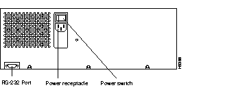 The power switch, power receptacle, and the RS-232 port are located on the rear panel as shown in Figure 1-9.