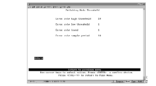 • Error rate high threshold--When the port is set to adaptive mode, the error rate high threshold is one of the two criteria used to automatically force the port from cut-through mode to store-and-forward mode. If the percentage of CRC errors detected in a sampling period (the error rate trend) exceeds the error rate high threshold, the port is forced to operate in store-and-forward mode. Valid values are 0 through 100 percent. The default is 10 percent.
