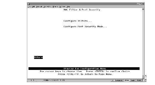 To limit the scope and access of users on segments attached to the Catalyst 2600, select MAC Filter & Port Security from the Configuration Menu. The MAC Filter & Port Security panel (Figure 6-2) is displayed.