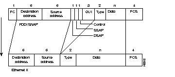 When an Ethernet II frame is received, the translation function adds the FC, LLC and SNAP-OUI fields as shown in Figure C-4. A SNAP-OUI of 00-00-00 is used for all Type values except 80-F3, where the SNAP-OUI of 00-00-F8 is used.