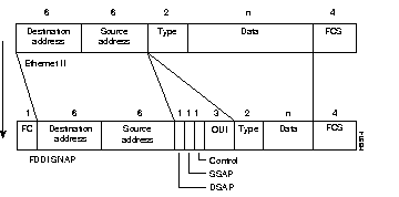 The special case for IPX has to do with translating between FDDI SNAP and the three associated Ethernet frame formats shown in Table C-1. When forwarding from Ethernet to FDDI, the FDDI module translates all three Ethernet frame formats into the FDDI SNAP format. To determine which Ethernet frame format the FDDI SNAP frame should be translated into, the FDDI modules use incoming frames to learn which frame format to use for a given MAC address. Alternatively, the FDDI module provides the option of defining the default Ethernet frame format to be used. Once configured, all IPX FDDI SNAP frames are translated into this Ethernet frame format.