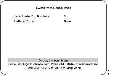 Step 1 From the Main menu, select the Configuration menu, then select the SwitchProbe (Configuration) menu. The following screen appears: