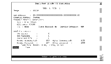 To access statistics about the virtual ATM ports, select Port Statistics on the Statistics Menu panel and specify the port identifier of the ATM port. The Port x ATM Statistics panel (Figure 21) is displayed.