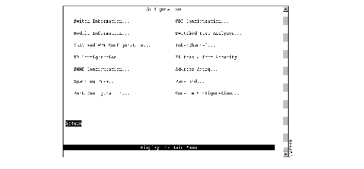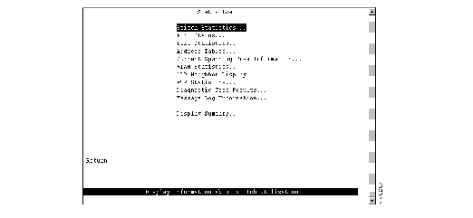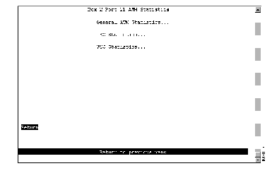 The Catalyst 3900 provides status and statistical information for several aspects of the ATM expansion module. To access the status and statistical information, select Statistics on the Main Menu. The Statistics panel (Figure 19) is displayed.