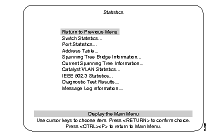 The Switch Statistics screen shows the statistics and information about stations connected to the Catalyst 3000.