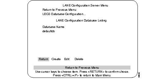 Step 3 Select Edit for the chosen database. At the next level of the menu, use the Create option to create an entry for each VLAN you want to support on this LECS.