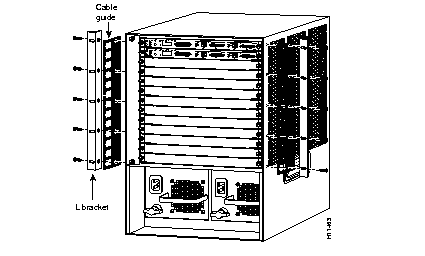 - Attach the cable guide, if desired, using the six cover panel screws removed in Step 1. Attach the cable guide to the right side of the switch to prevent the cables from obscuring module LEDs. (See Figure 4.)