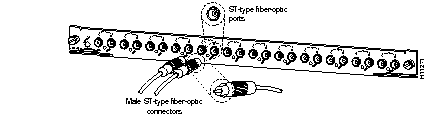 The FDDI Single Mode Fiber Module (WS-X5104) accepts male ST-type fiber-optic connectors. (See Figure 21.)