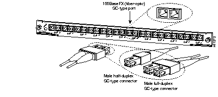 Supervisor engine 100BaseFX (fiber-optic) uplink ports accept SC-type single-mode or multimode, half- or full-duplex fiber-optic connectors. (See Figure 15.)