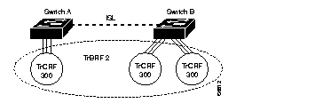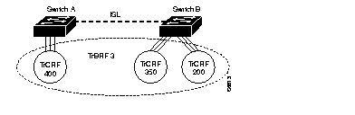 Multiple logical rings or TrCRFs can be interconnected via a single TrBRF. The TrBRF provides either the SRB or SRT switching mode. For source routing, the switch, or network of switches, appears as a single bridge between the logical rings. If SRB is used, duplicate MAC addresses can be defined on different logical rings.