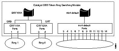 The Catalyst 5000 series Token Ring module applies the IEEE 802.5 annex K models of Concentrator Relay Functions (CRFs) and Bridge Relay Functions (BRFs). The Token Ring Concentrator Relay Function (TrCRF) and the Token Ring Bridge Relay Function (TrBRF) models support for the following bridging modes:
