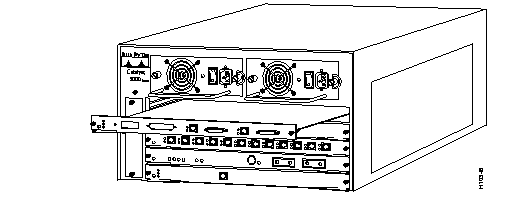 Step 6 Place the switching module in the slot. Align the notch on the sides of the switching-module carrier with the groove in the slot, as shown in Figure 6 for the Catalyst 5000 switch. Use the same procedure for the Catalyst 5002 and Catalyst 5500 switches.