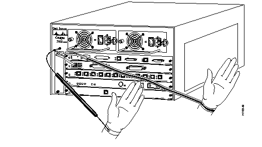 Step 5 Hold the switching-module handle with one hand and place your other hand under the carrier to support the switching module and guide it into the slot. Avoid touching the printed circuit boards or connector pins.