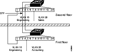 For example, Figure 1-9 illustrates two trunks that are connected to the ports of supervisor engine modules on two Catalyst 5000 series switches. The port cost of carrying VLAN traffic across these trunks is equal.