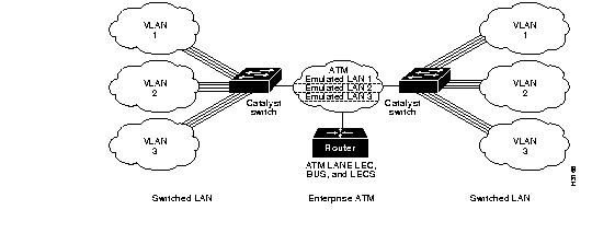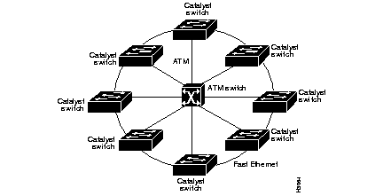 Figure 1-10 shows an example of an ATM LAN emulation configuration.