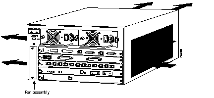 The fan assembly draws cool air from the right side of the chassis, when you are facing the rear of the chassis, to cool the modules. The exhaust air is forced out the left side of the chassis. Figure 1-45 shows the airflow path.