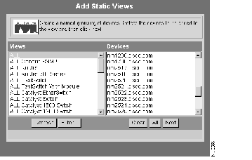 Step 3 Click ALL in the Views column, then in the Devices column, select the devices you want in your static view.