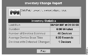 If any changes have occurred in the network inventory, the Inventory Change Report displays statistical information. (See Figure 4-2.)